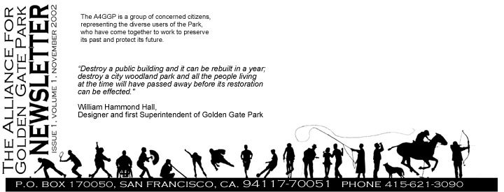 Though the Alliance is concerned with all of Golden Gate Park and with all who use it, this issue is concerned with the Concourse and the changes it faces.