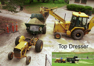 In anticipation of the belt arrival, the Top Dresser is in the equipment
