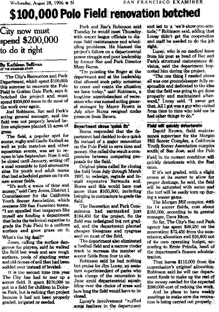 and graded and an entire new surface of sod applied. Cost about $400,000.