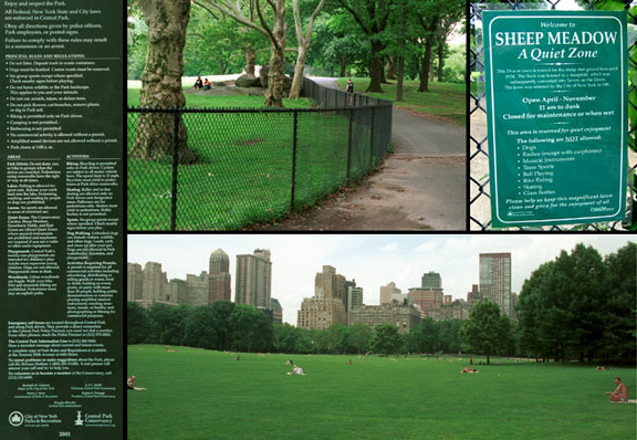 Central Park is very “controlled” with many fences and DO NOT signs, but also an every-present maintenance staff picking up trash and emptying trashcans 7 day a week.