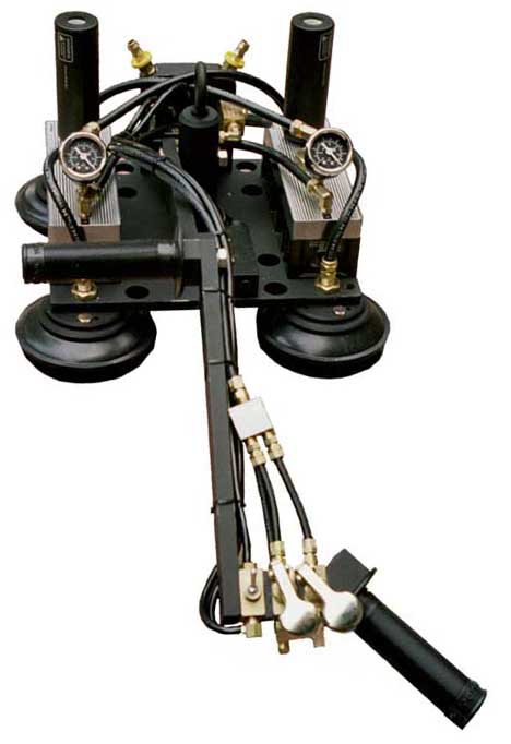 The MLD100 vacuum head is rated at 100 lbs. of carboard box and 400 lbs on hard surface. This unit has controls for either a Knight or Zimmerman hoist and our pneumatic safety logic.
